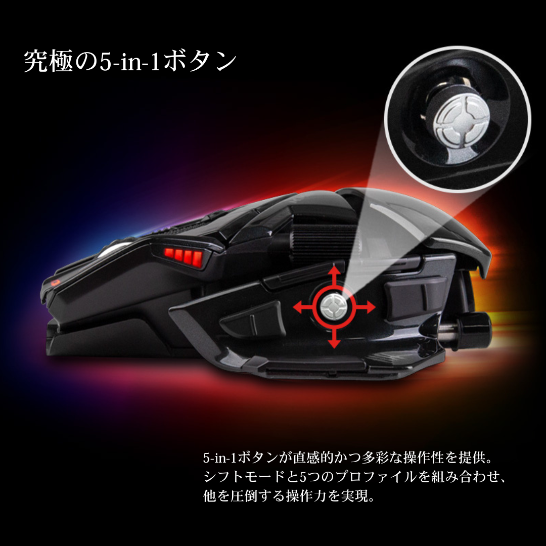 5-in-1ボタンが直感的かつ多彩な操作性を提供。シフトモードと5つのプロファイルを組み合わせ、他を圧倒する操作力を実現。